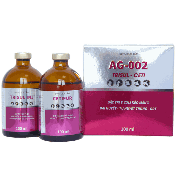 • TRISUL INJ kết hợp với CETIFUR Đặc trị các bệnh đường tiêu hóa và hô hấp trên gia cầm, thủy cầm. E.coli kéo màng, Bại huyết, Tụ huyết trùng, thương hàn, CRD trên Vịt, trị hen khẹc, vảy mỏ, ORT, CCRD, phân xanh - trắng, CORYZA, ký sinh trùng đường máu, viêm ruột hoại tử trên gà.