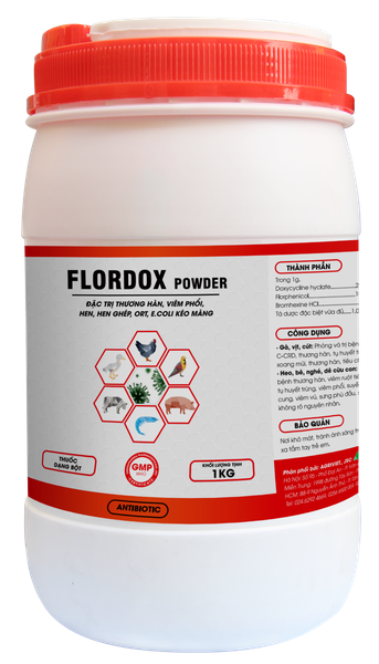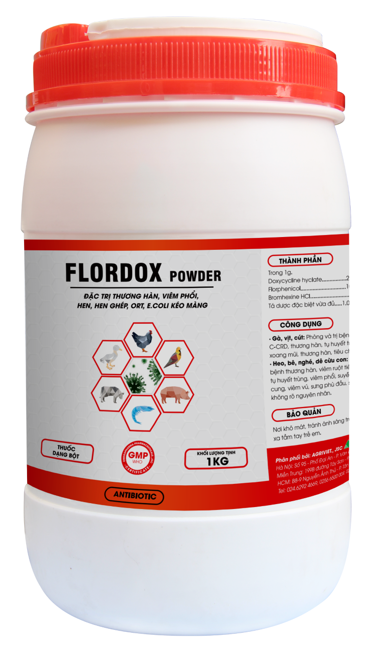 THÀNH PHẦN: Doxycycline hyclate: 200 mg, Florphenicol: 100 mg, Bromhexine HCl: 5 mg, Tá dược đặc biệt vừa đủ: 1.000 mg