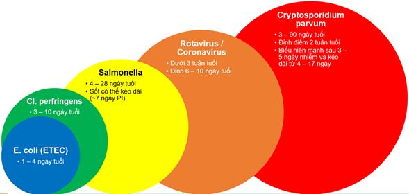 Theo Foster và cộng sự (2009), Escherichia coli (ETEC), Cryptosporidium parvum, rotavirus và coronavirus là những nguyên nhân truyền nhiễm quan trọng gây tiêu chảy trên bê.