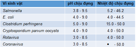 Bảng 1: Giới hạn chịu đựng của vi sinh vật