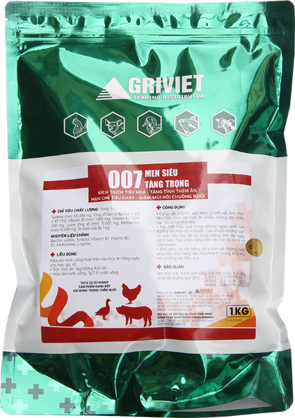 CHỈ TIÊU CHẤT LƯỢNG: Sorbitol (min) 100.000 mg; Tổng số bào tử Bacillus ≥ 3,8 x 10⁹ CFU; Vitamin B1 (min) 1.000 mg; Vitamin B2 (min) 200 mg; Lysine tổng số (min) 10.000 mg; Methionine (min) 10.000 mg, Tá dược vừa đủ 1 kg